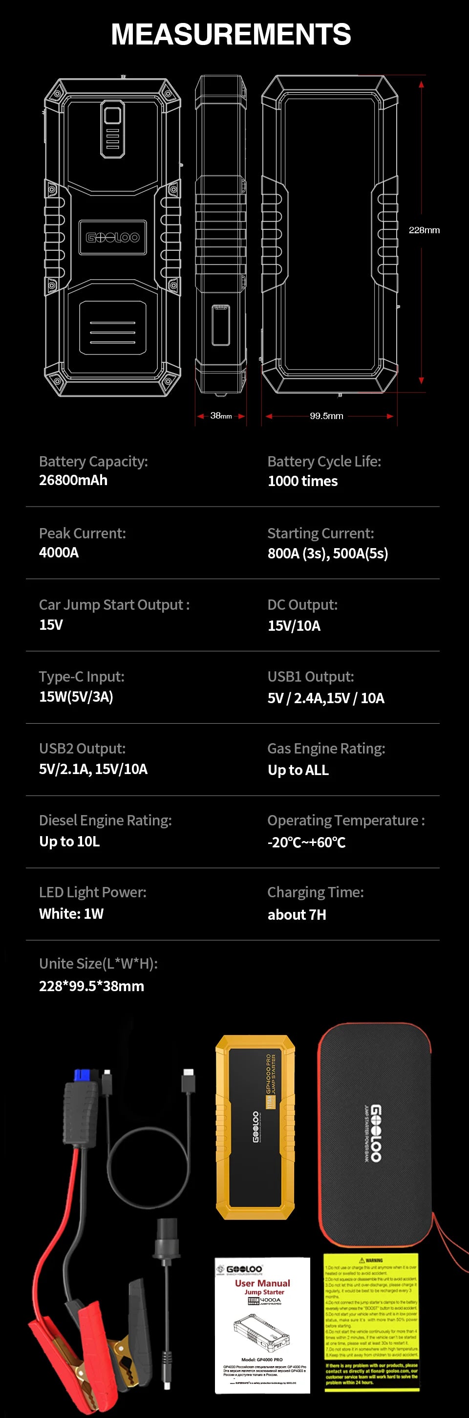 We help you !!!GOOLOO Jstar one 26800mah 4000A Car Jump Starter !